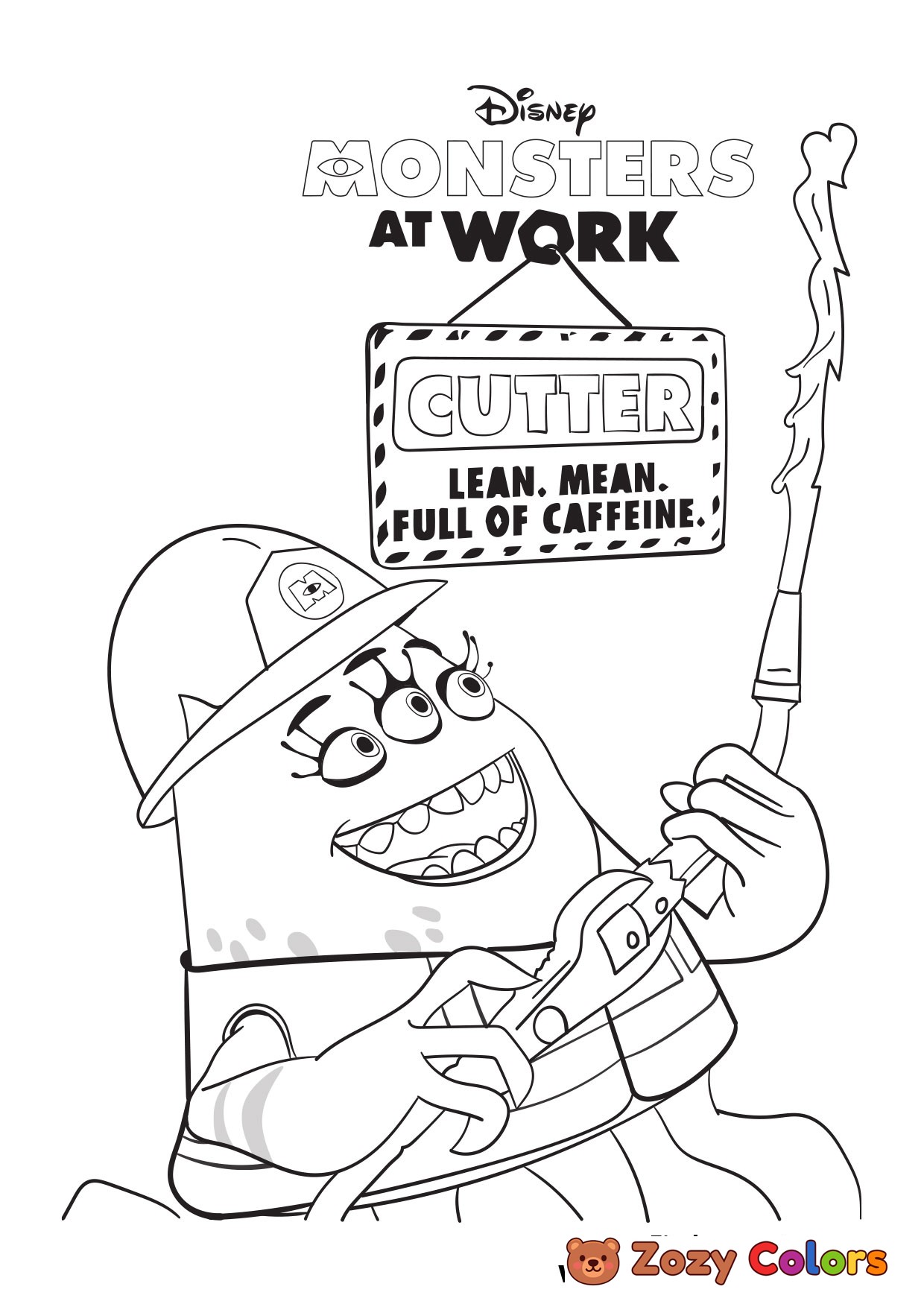 Cutter - Monsters at work. Coloring page to print or download and color for your kids.