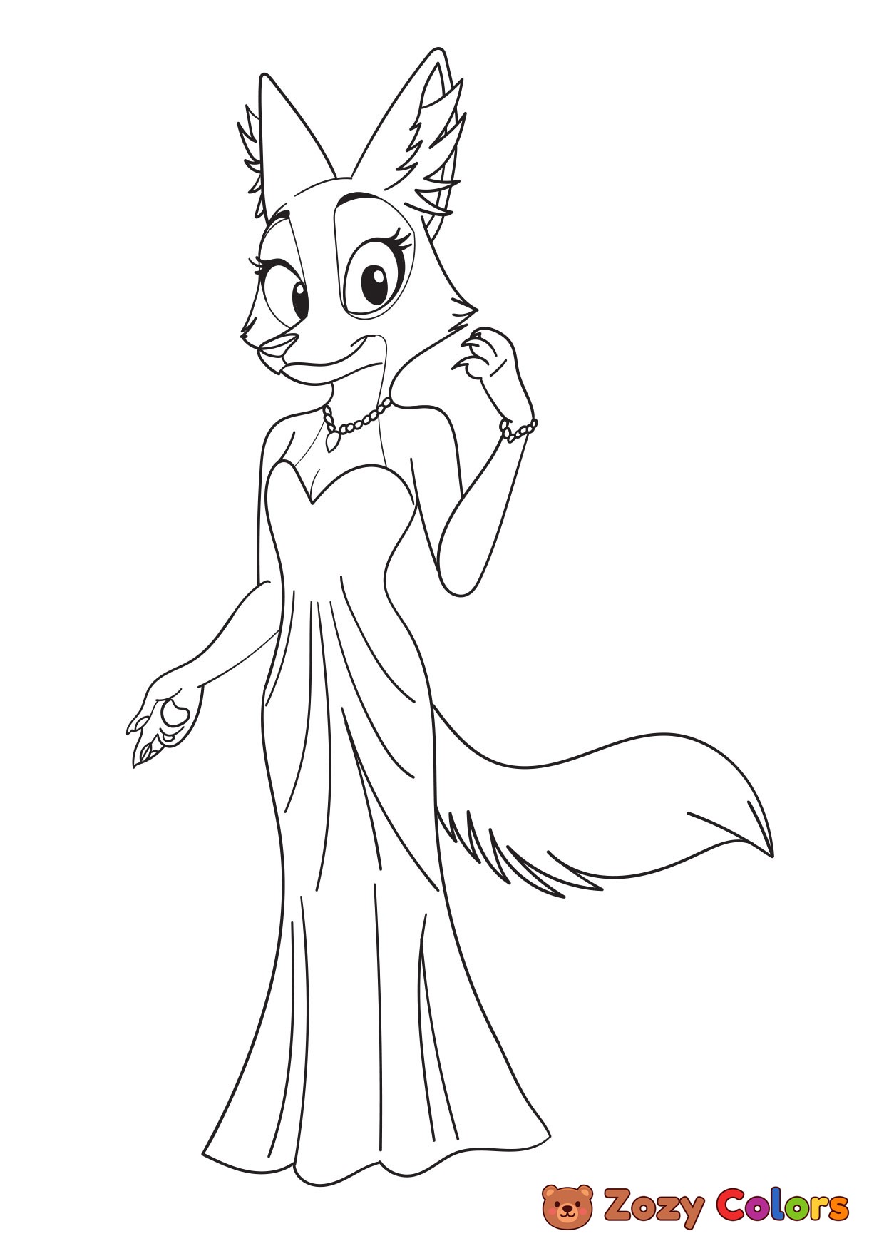 Diane Foxington in dress. Coloring page to print or download and color for your kids.