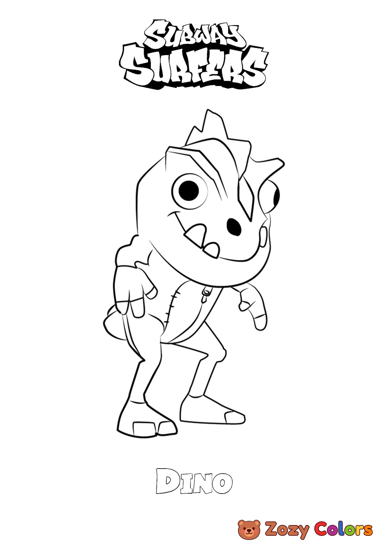Dino from Subway Surfers. Coloring page to print or download and color for your kids.