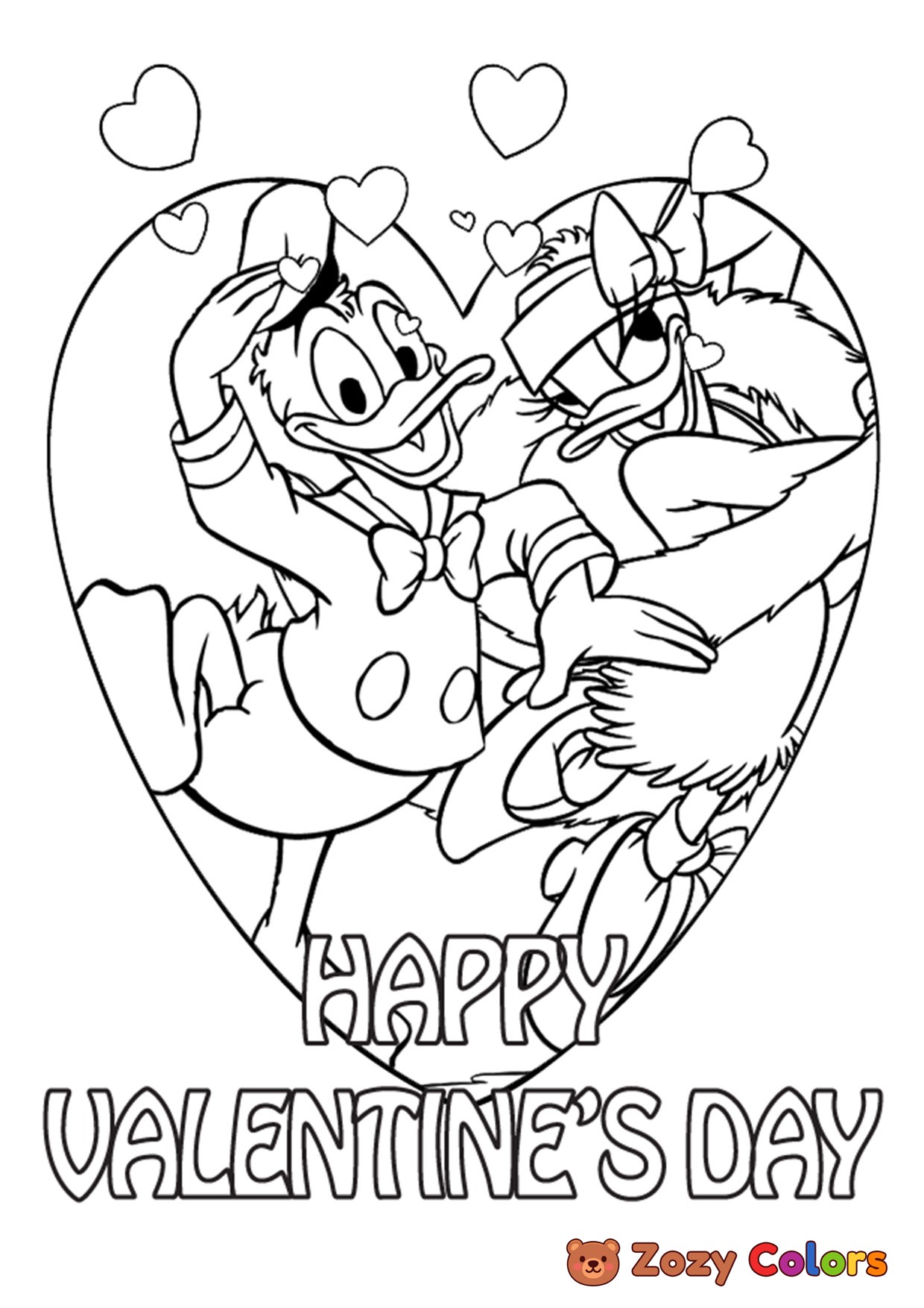 Donald and Daisy valentines. Coloring page to print or download and color for your kids.