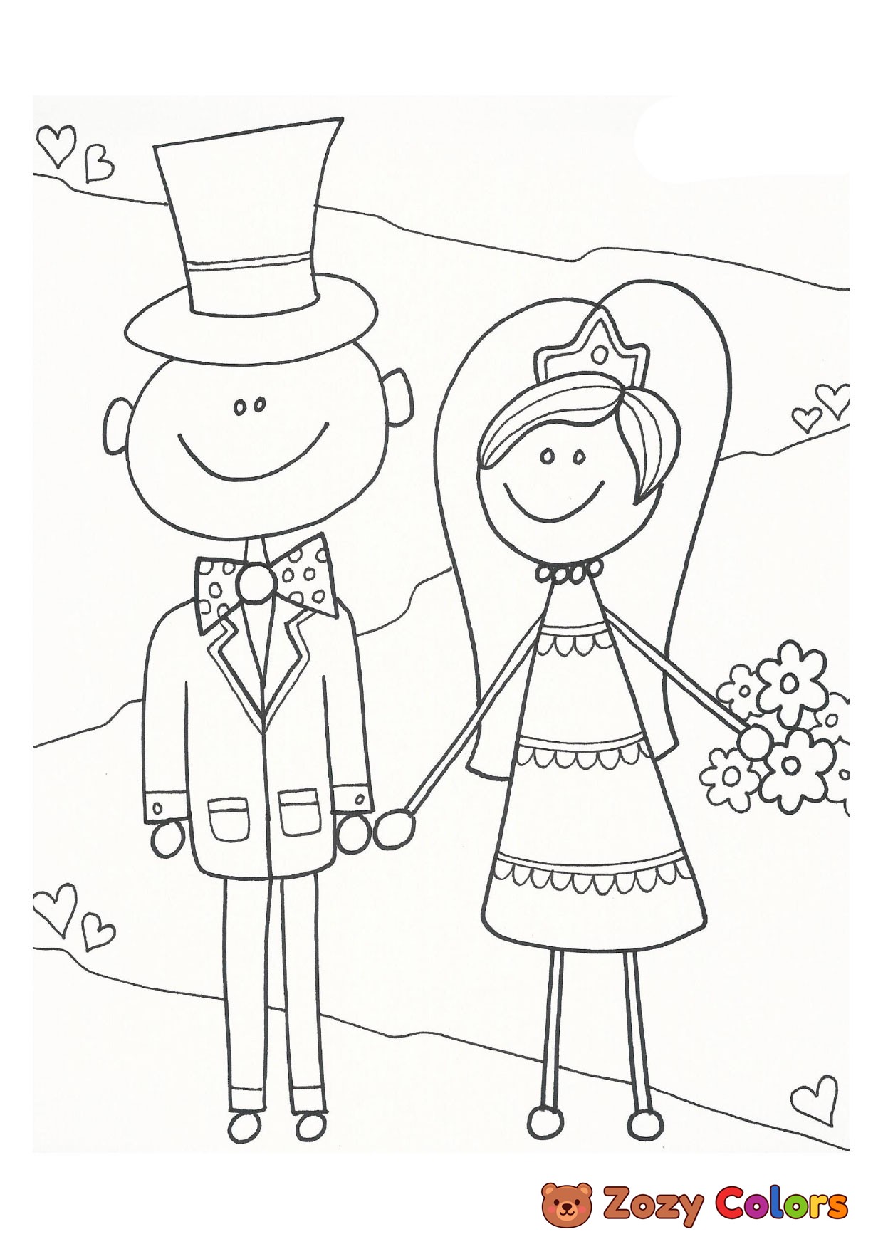 Doodle wedding couple. Coloring page to print or download and color for your kids.