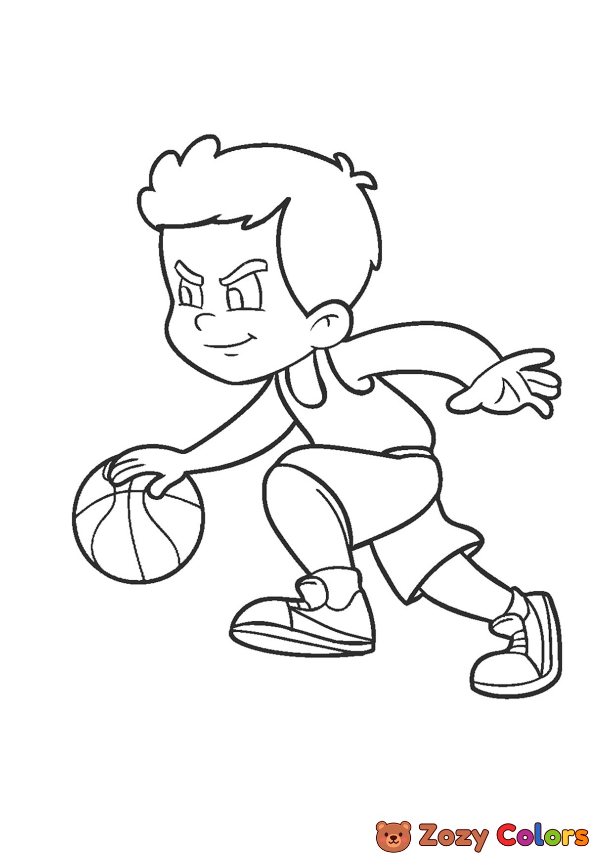 Dribbling basketball. Coloring page to print or download and color for your kids.