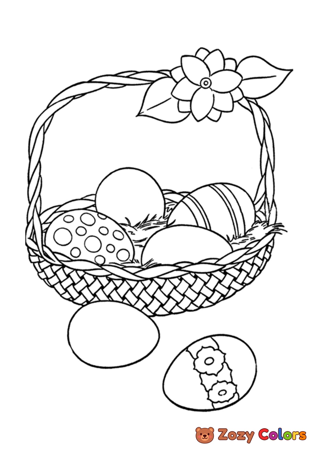 Easter basket with a flower. Coloring page to print or download and color for your kids.
