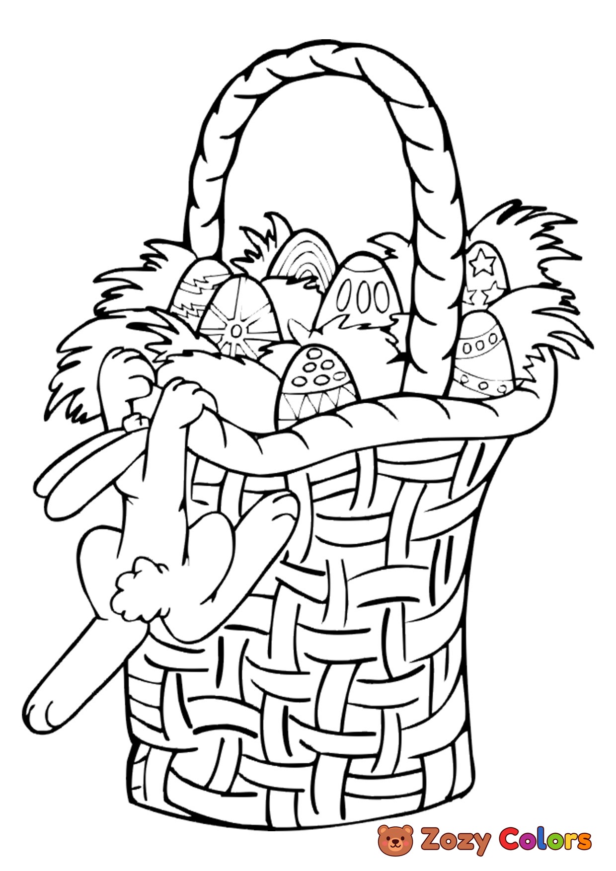 Easter basket with eggs. Coloring page to print or download and color for your kids.