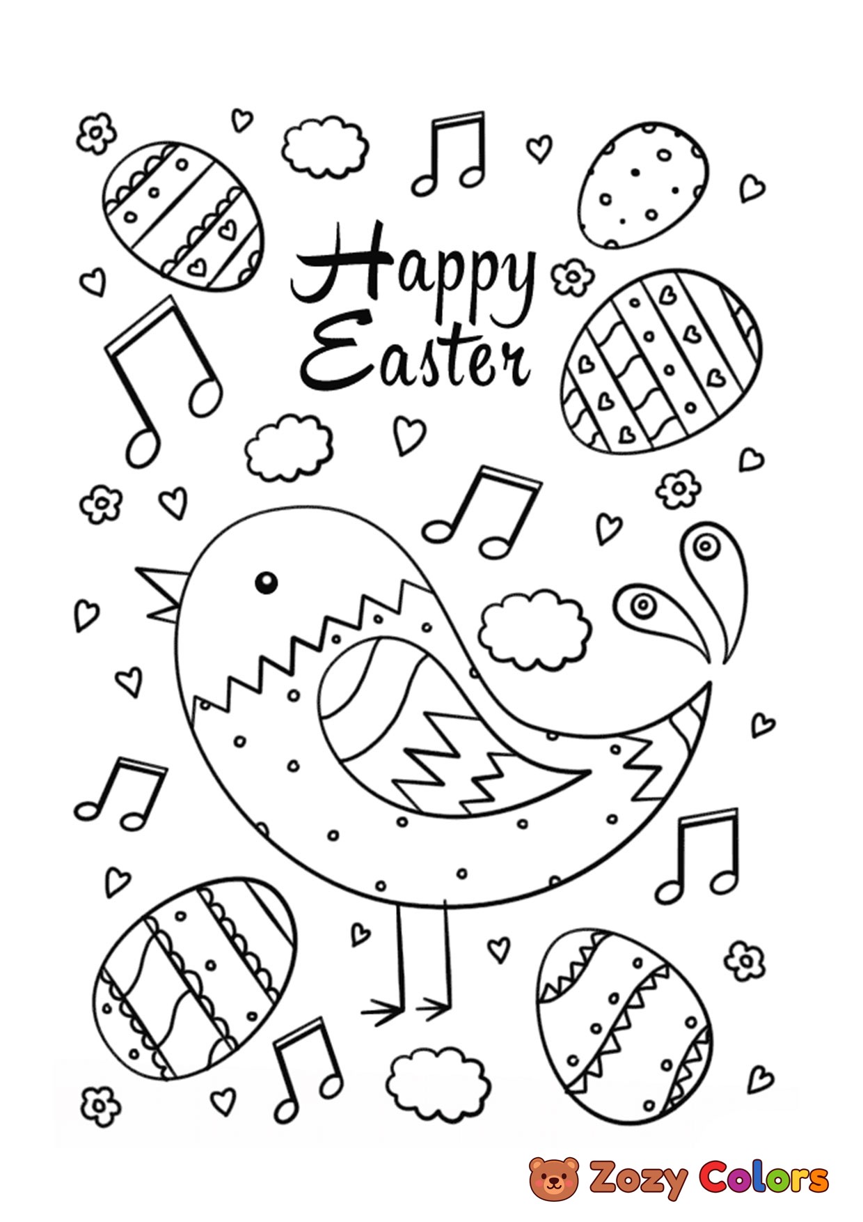 Easter bird doodle. Coloring page to print or download and color for your kids.