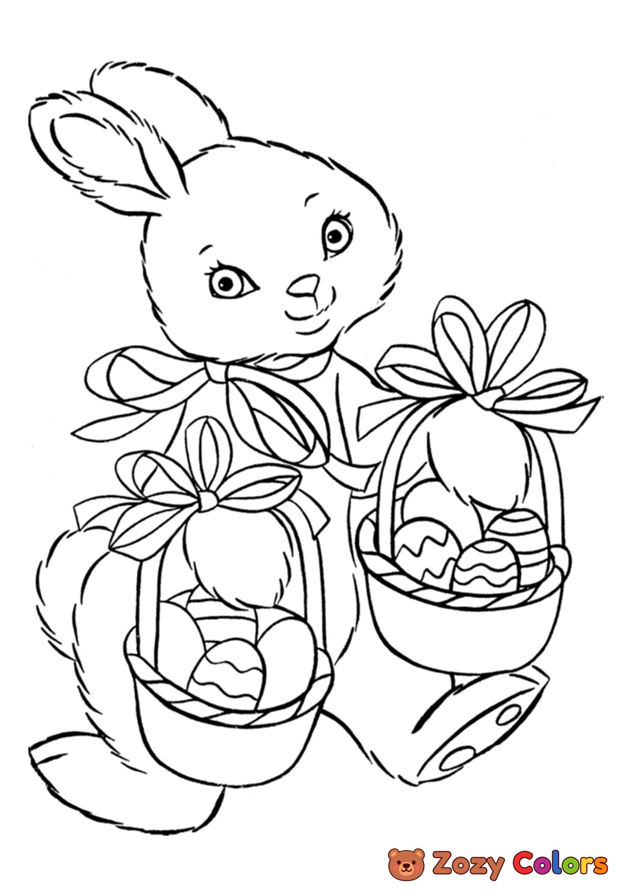 Easter bunny with baskets. Coloring page to print or download and color for your kids.