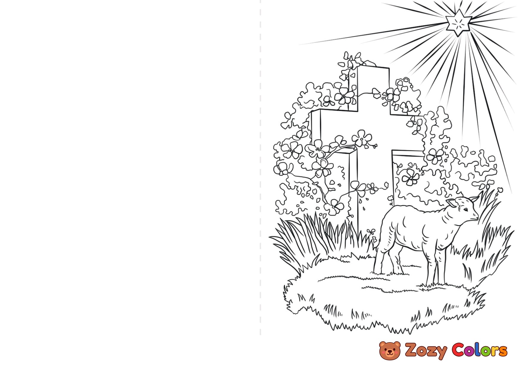 Easter card with a cross. Coloring page to print or download and color for your kids.