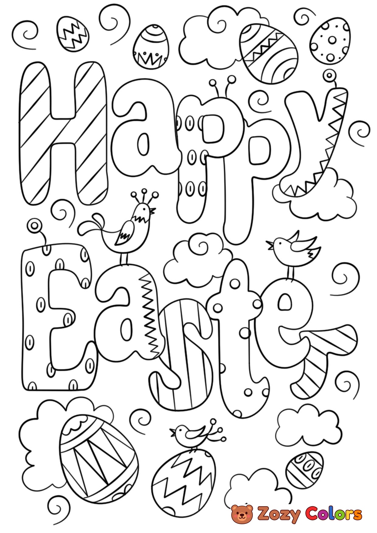 Easter doodle. Coloring page to print or download and color for your kids.