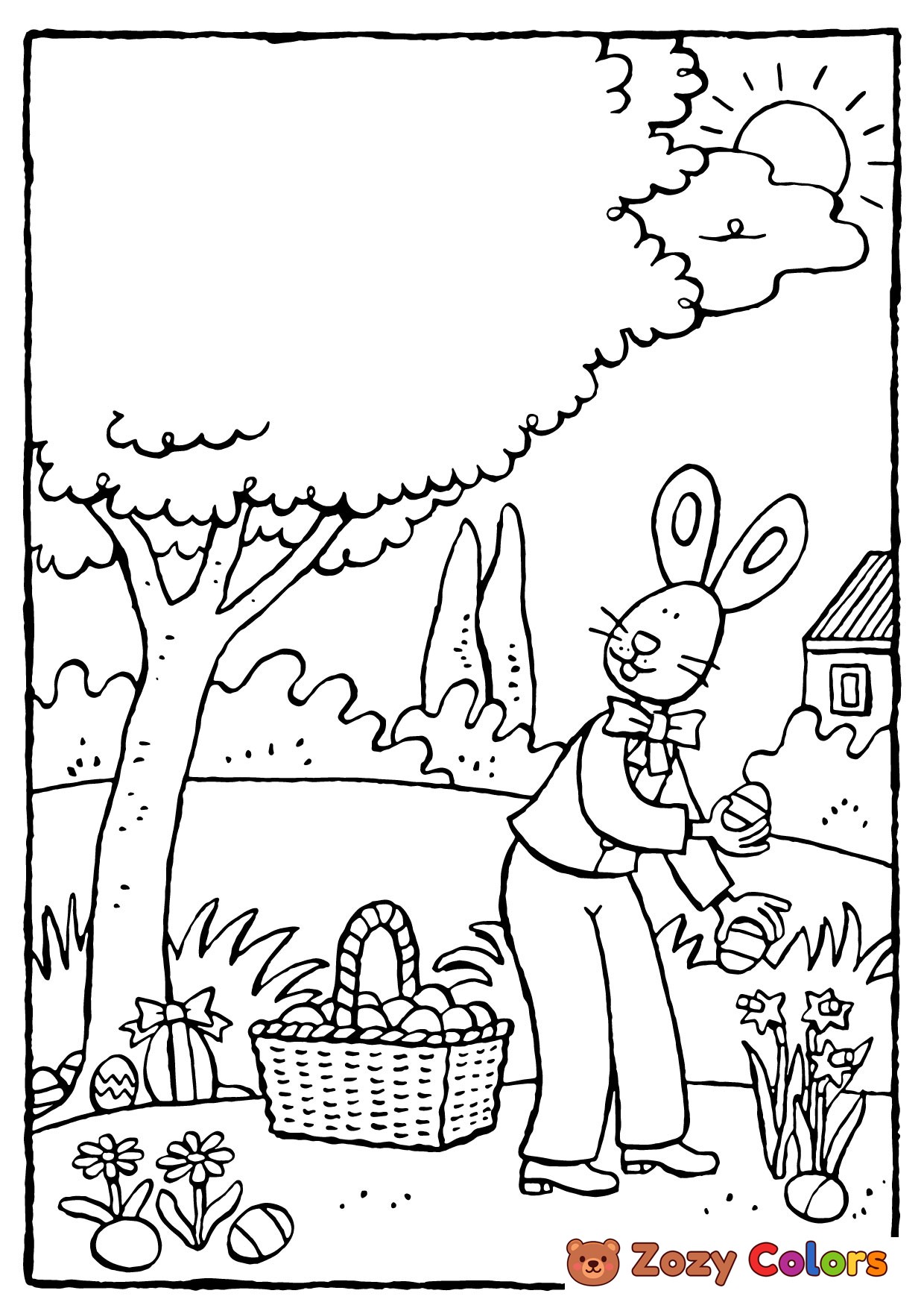 Easter egg hiding. Coloring page to print or download and color for your kids.