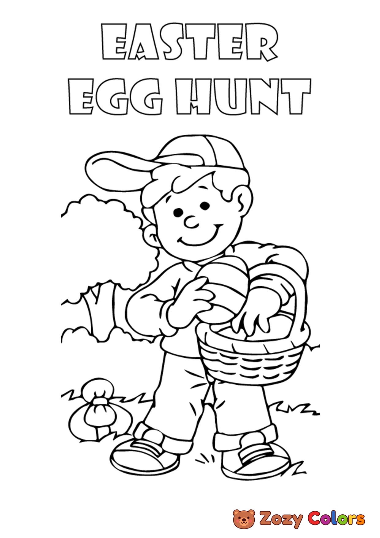 Easter egg hunt. Coloring page to print or download and color for your kids.