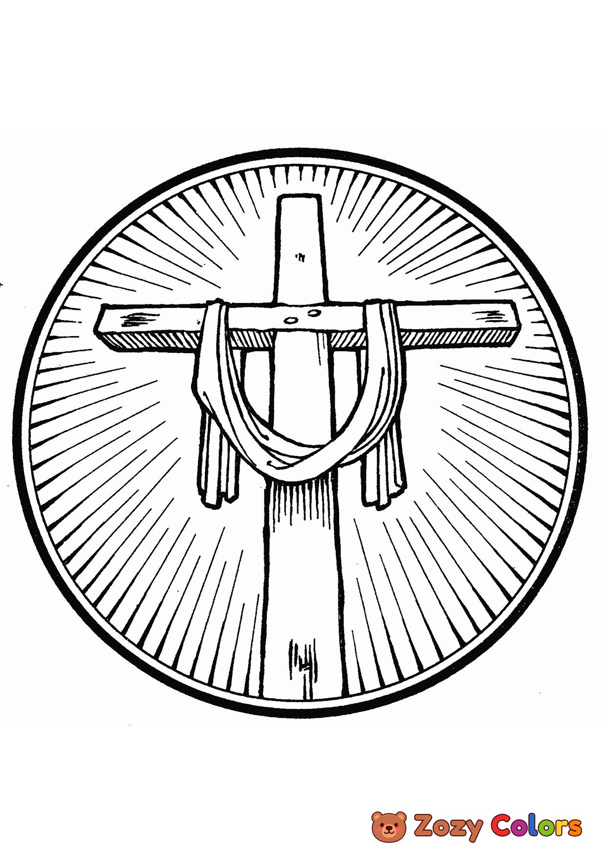 Easter Jesus cross. Coloring page to print or download and color for your kids.