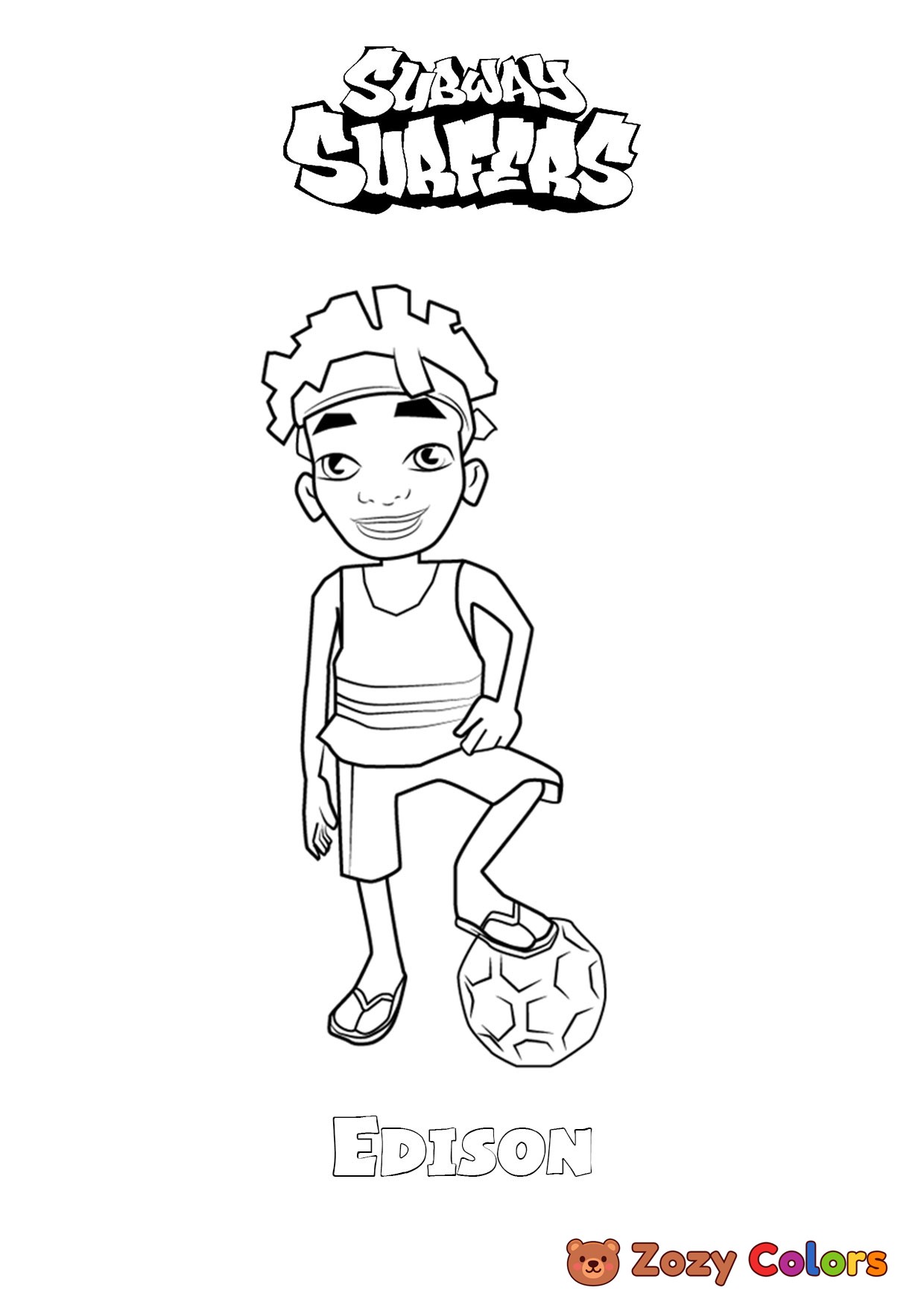 Edison from Subway Surfers. Coloring page to print or download and color for your kids.
