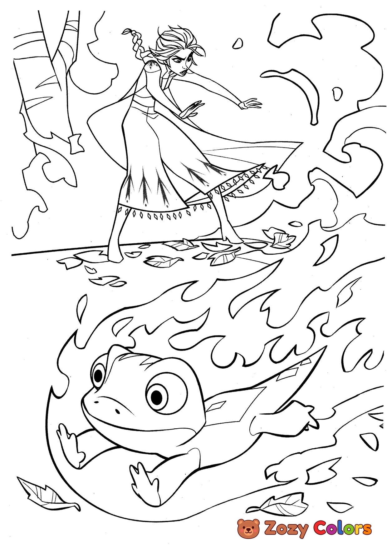 Elsa with Bruni. Coloring page to print or download and color for your kids.