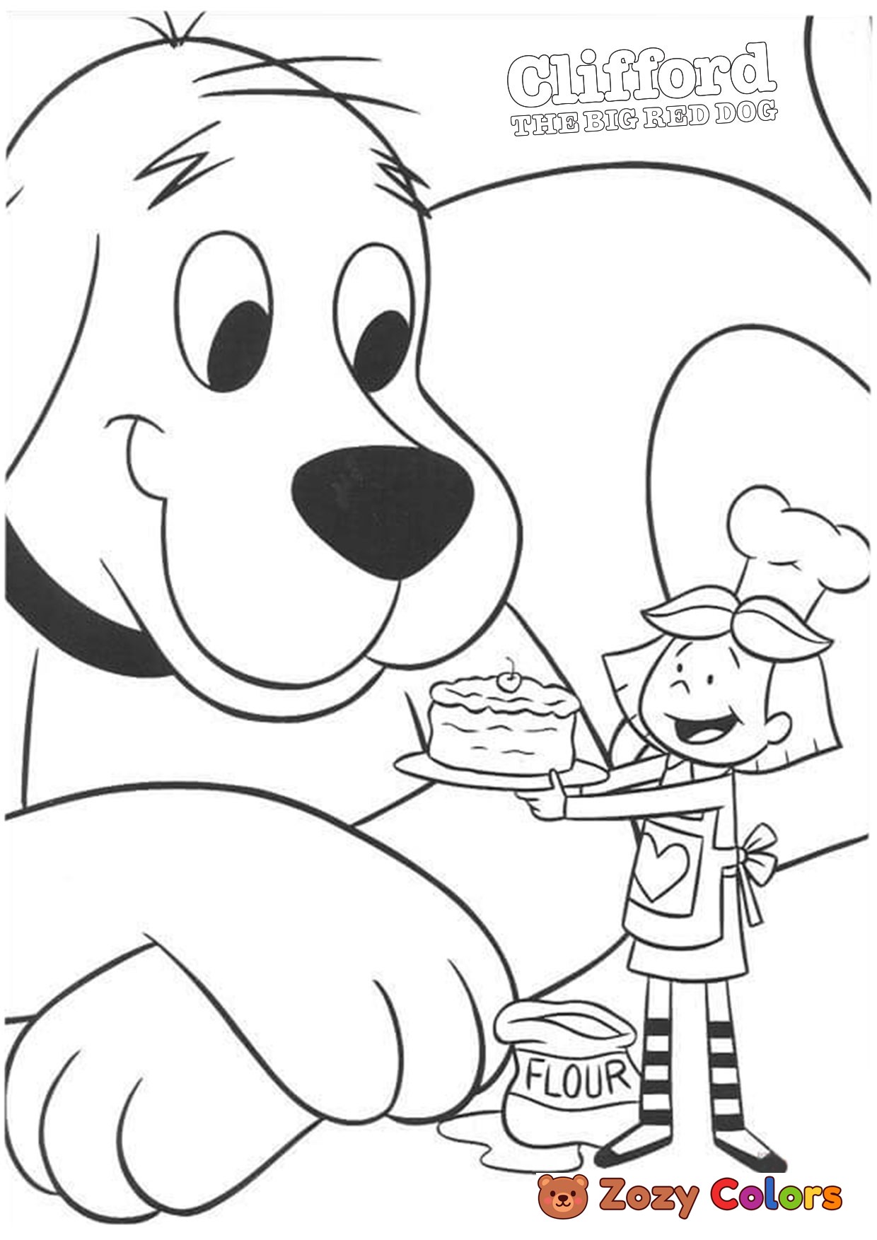 Emily with CLifford. Coloring page to print or download and color for your kids.