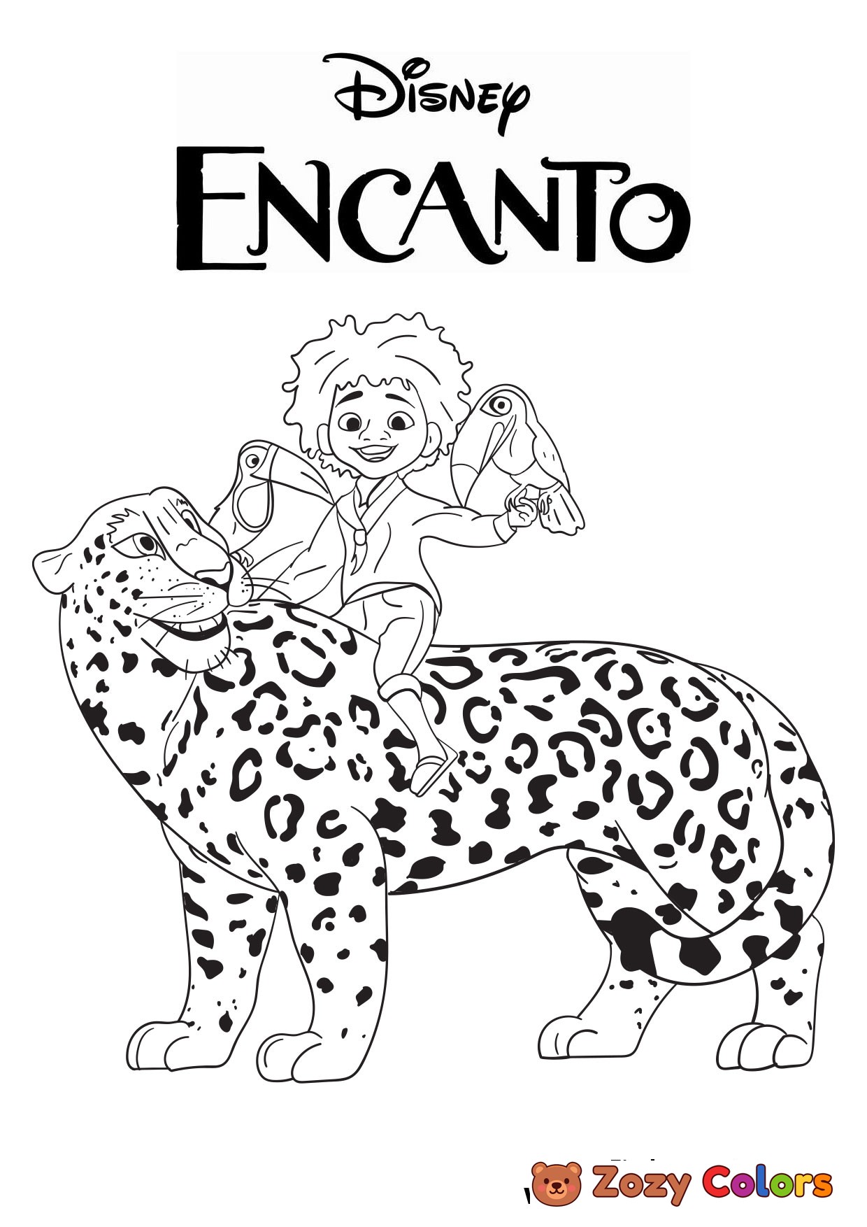 Encanto family with animals. Coloring page to print or download and color for your kids.