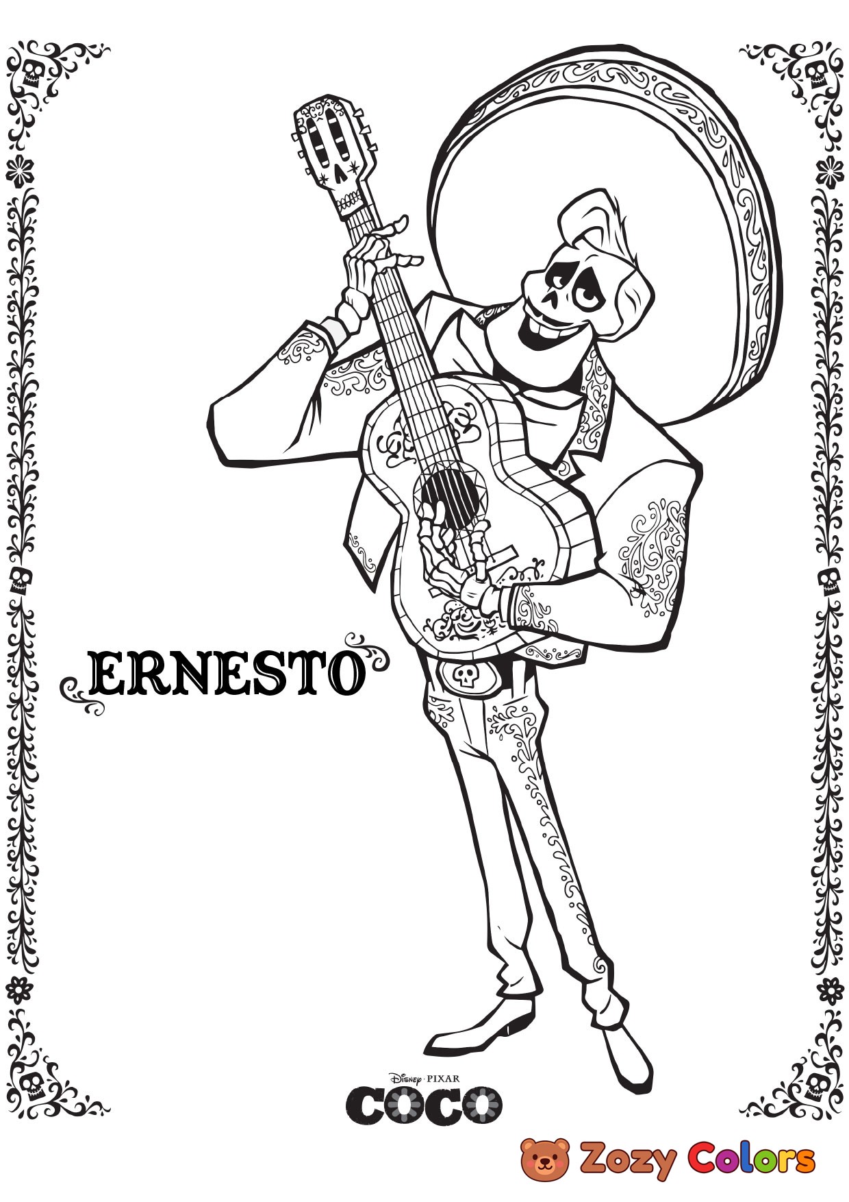 Ernesto from Coco. Coloring page to print or download and color for your kids.