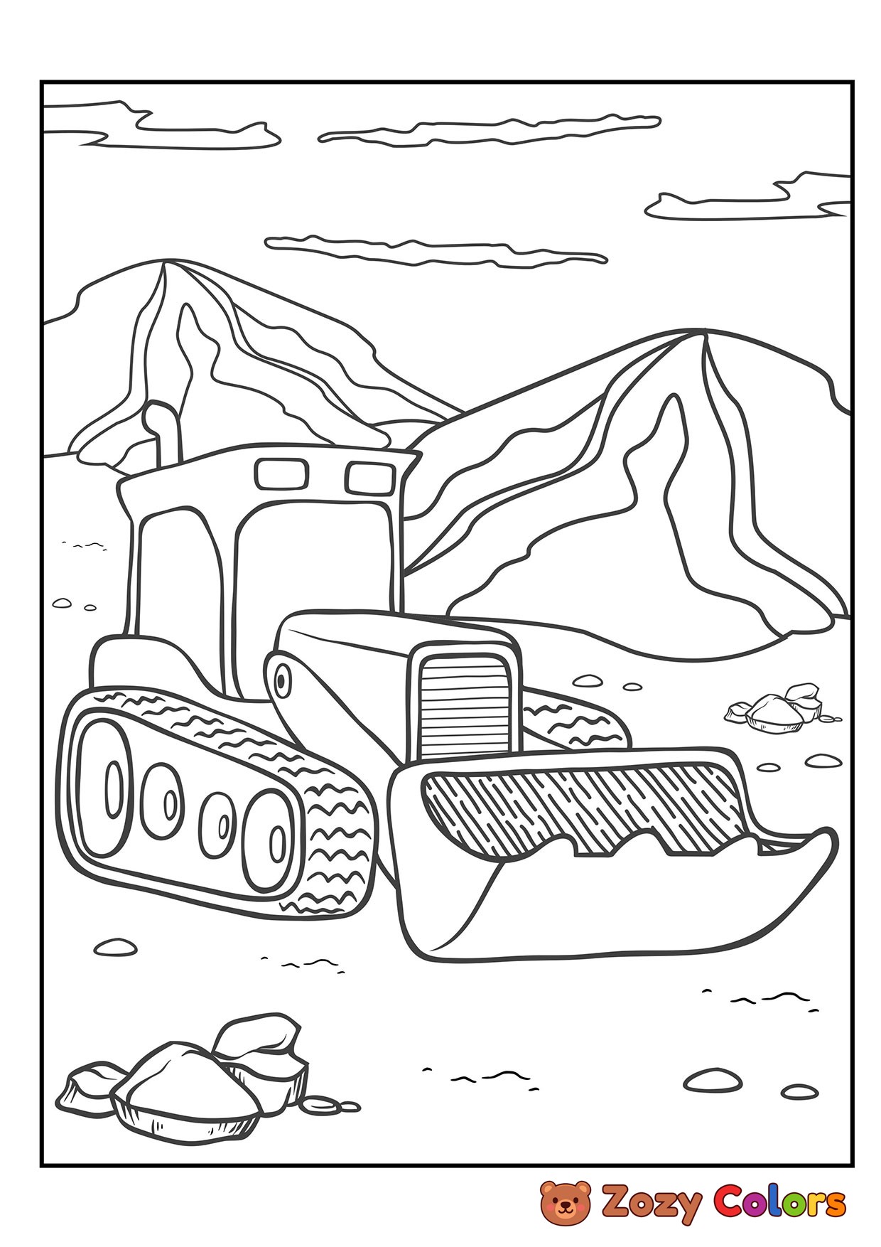 Excavator in ruins. Coloring page to print or download and color for your kids.