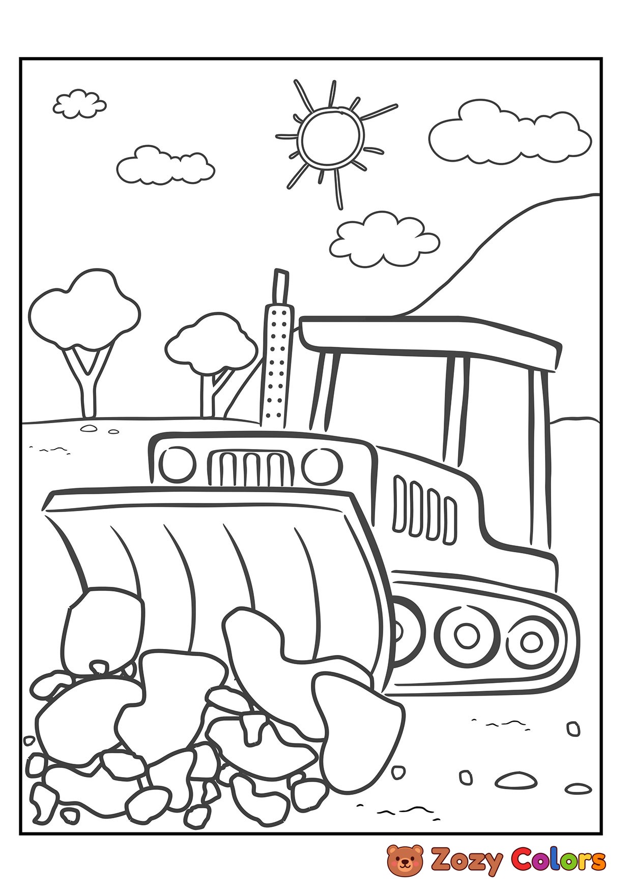 Excavator moving rocks. Coloring page to print or download and color for your kids.
