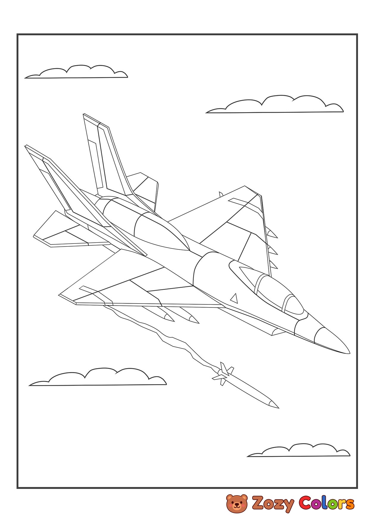 Fighter jet with rockets. Coloring page to print or download and color for your kids.