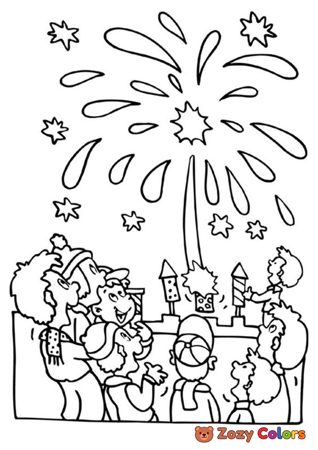 Fireworks for New Year. Coloring page to print or download and color for your kids.