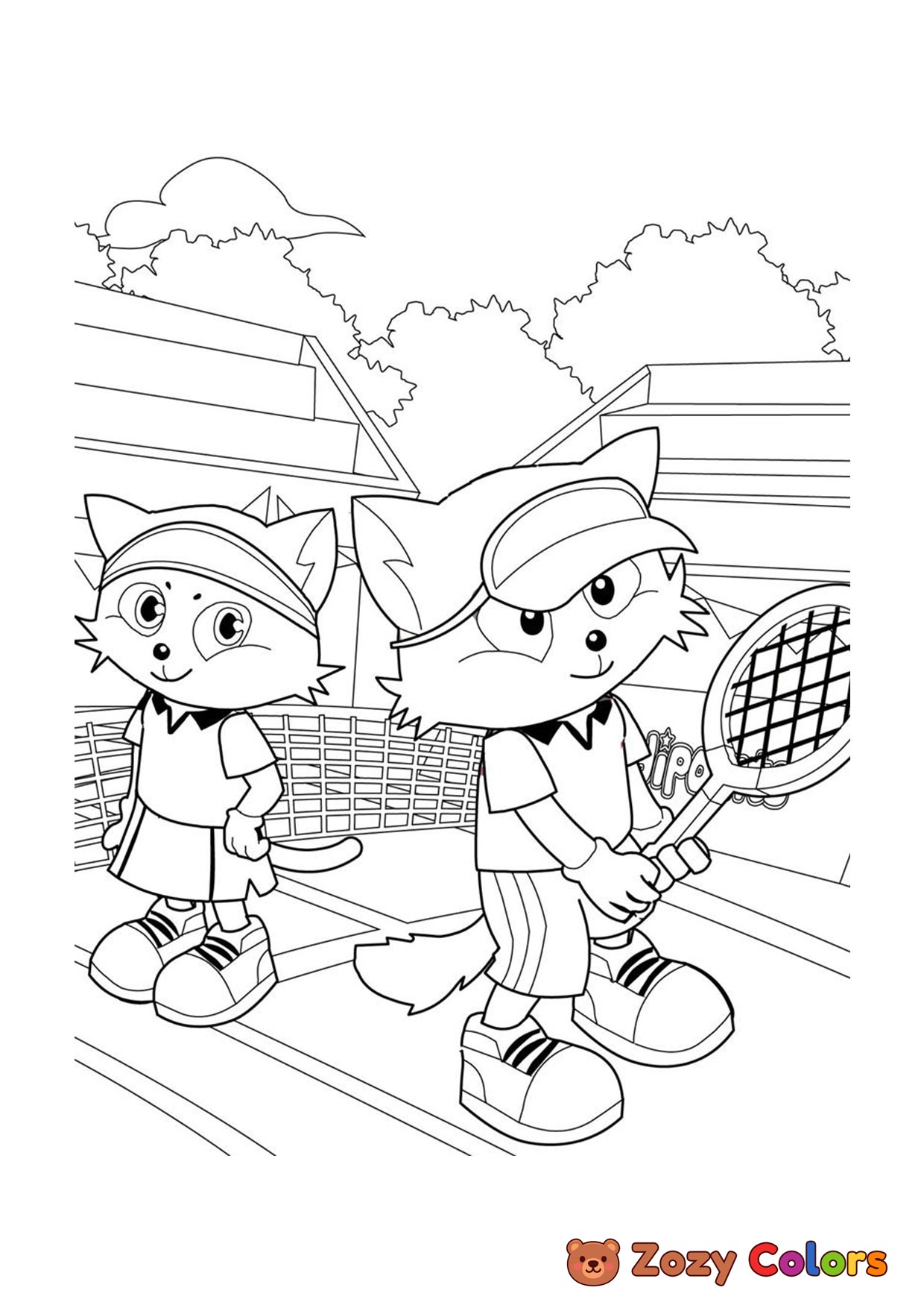 Foxes playing tennis. Coloring page to print or download and color for your kids.