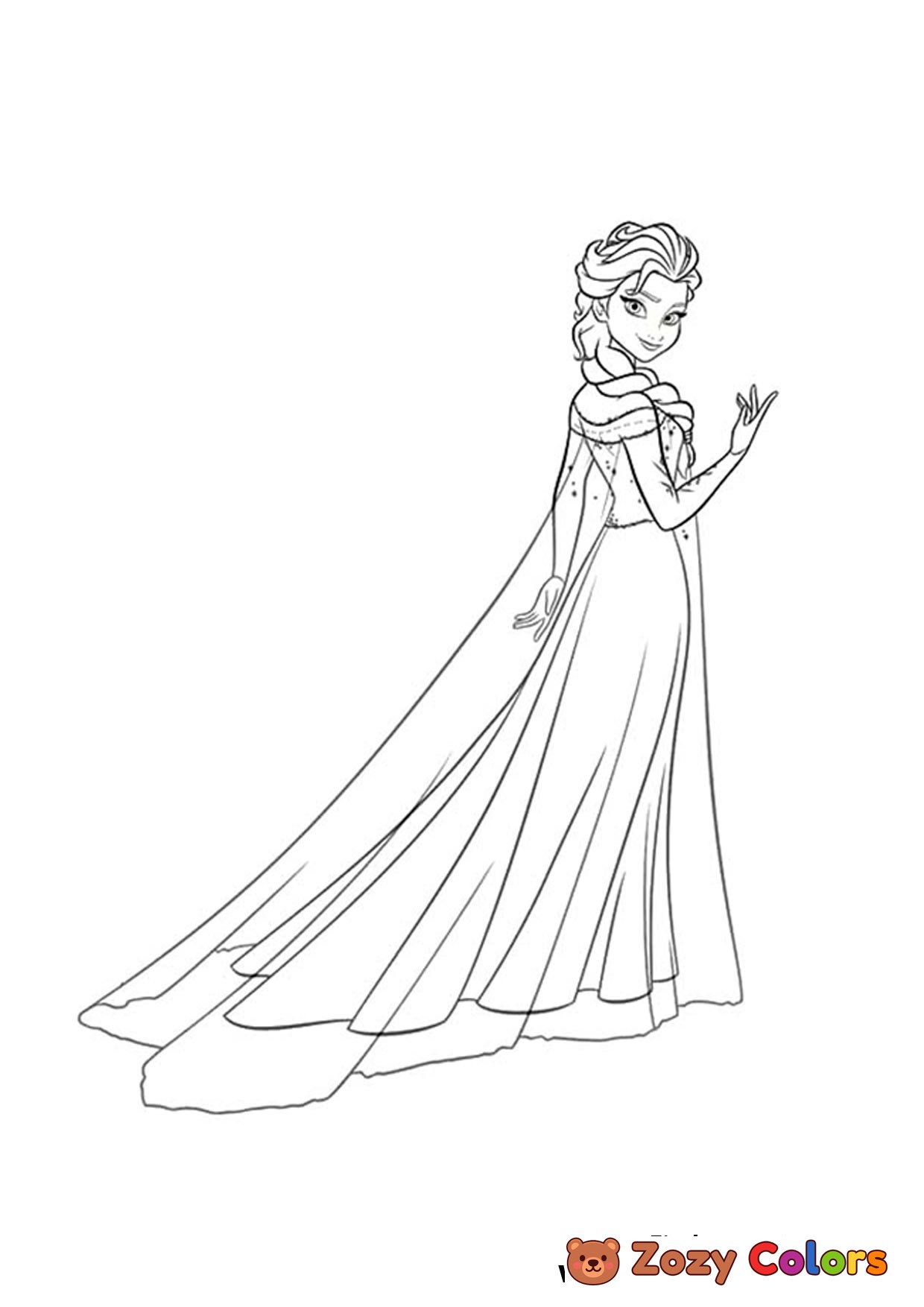 Frozen Elsa in her special dree. Coloring page to print or download and color for kids.