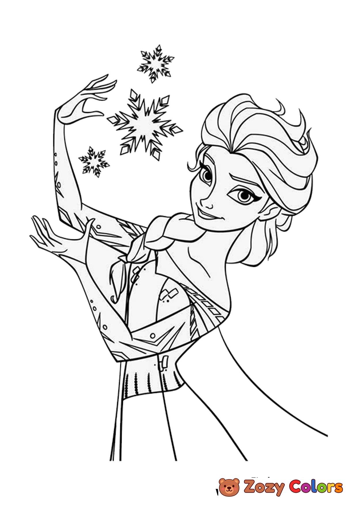 Frozen Elsa making snowflakes with her special powers. Coloring page to print or download and color for kids.