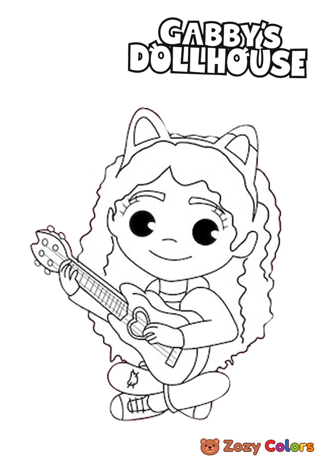 Gaby playing guitar - Gaby's Dollhouse. Coloring page to print or download and color for your kids.