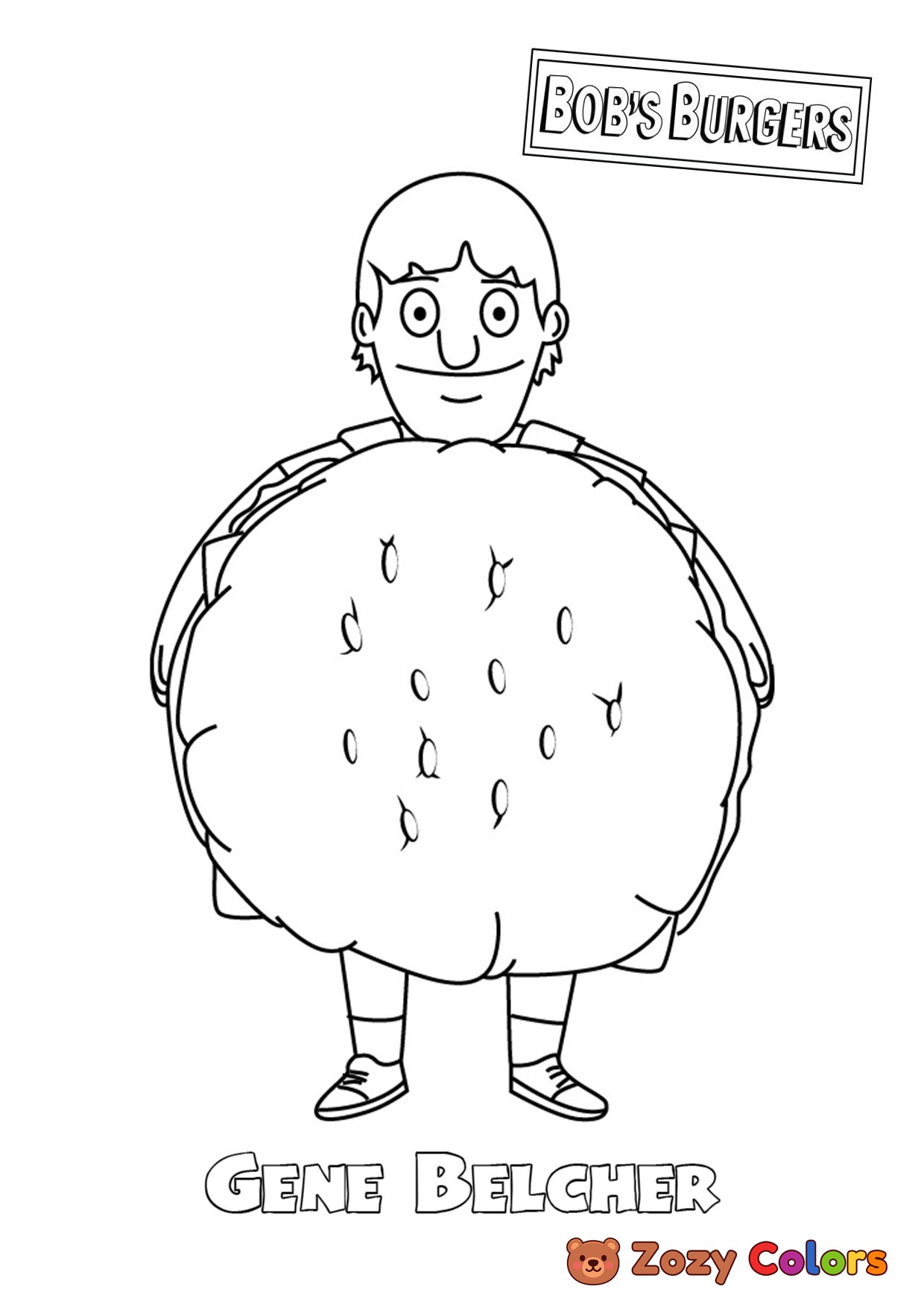 Gene Belcher from Bob's Burgers. Coloring page to print or download and color for your kids.