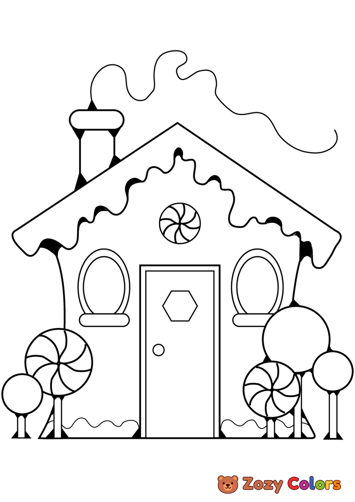 Gingerbread house. Coloring page to print or download and color for your kids.