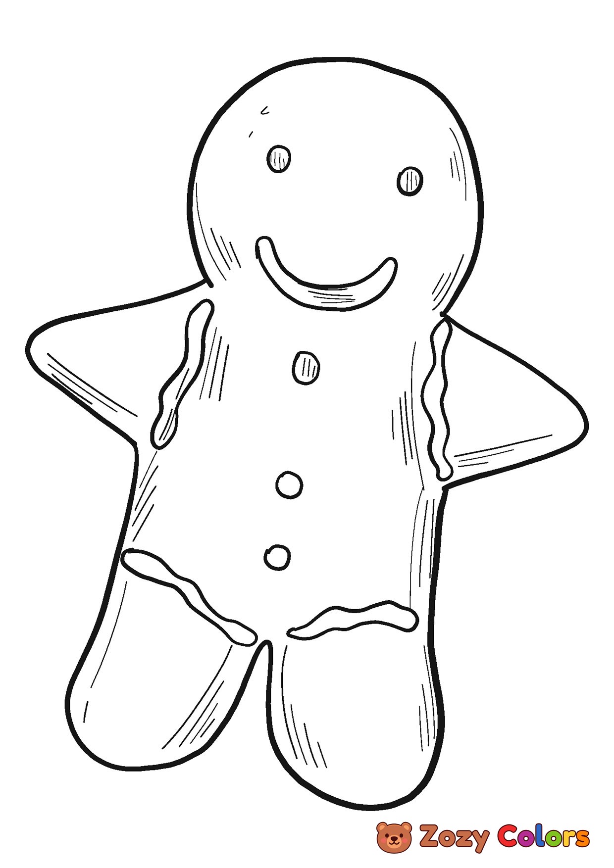 Gingerbread man smiling. Coloring page to print or download and color for your kids.
