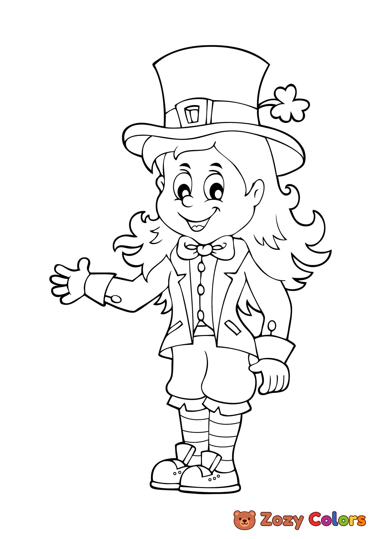 Girl leprechaun. Coloring page to print or download and color for your kids.