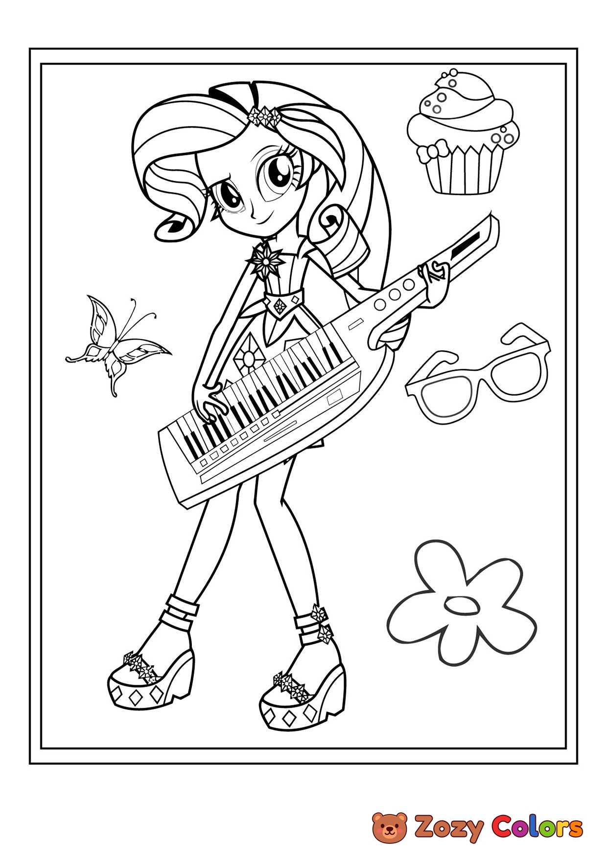 Girl playing keyboards. Coloring page to print or download and color for your kids.