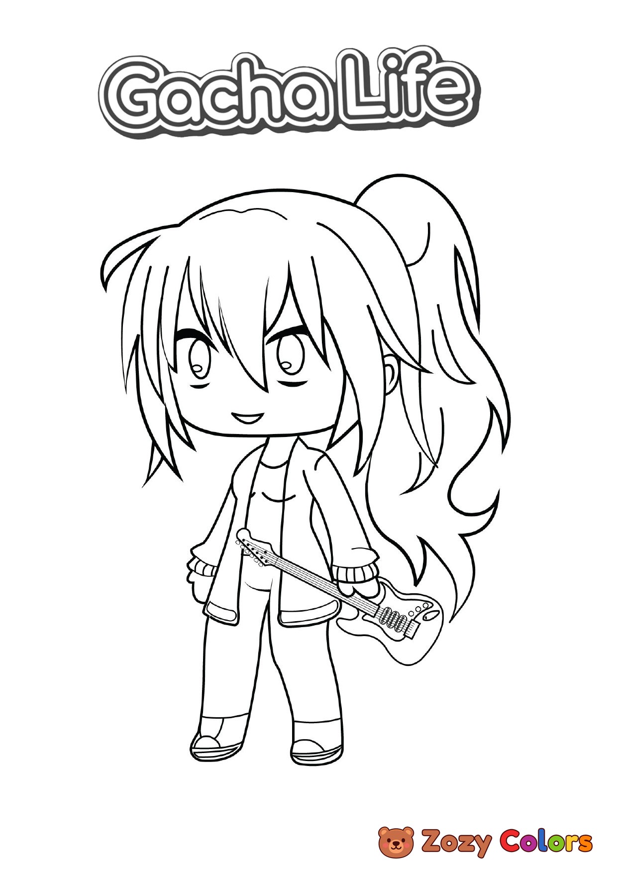 Girl with guitar from Gacha Life. Coloring page to print or download and color for your kids.