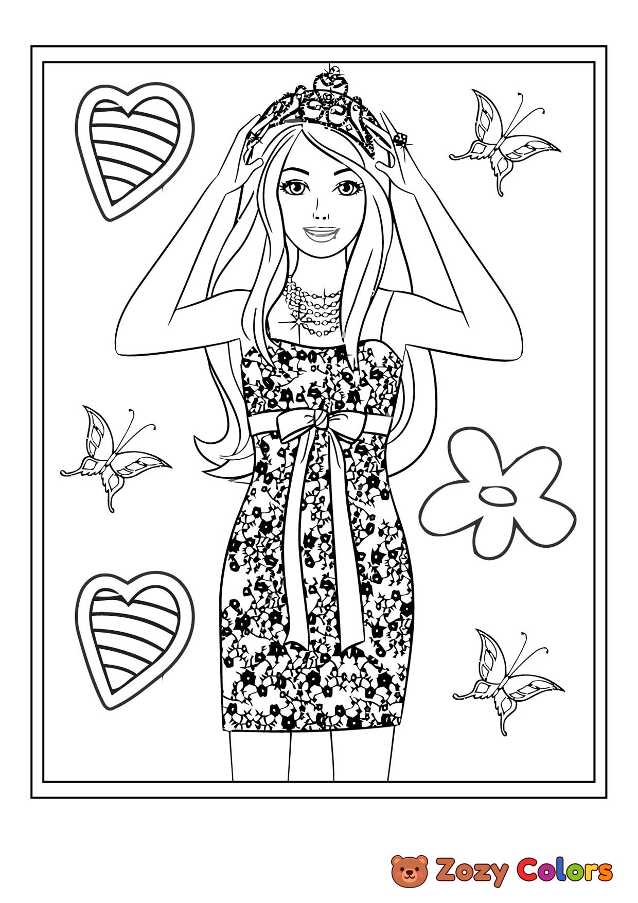 Girl with tiara. Coloring page to print or download and color for your kids.