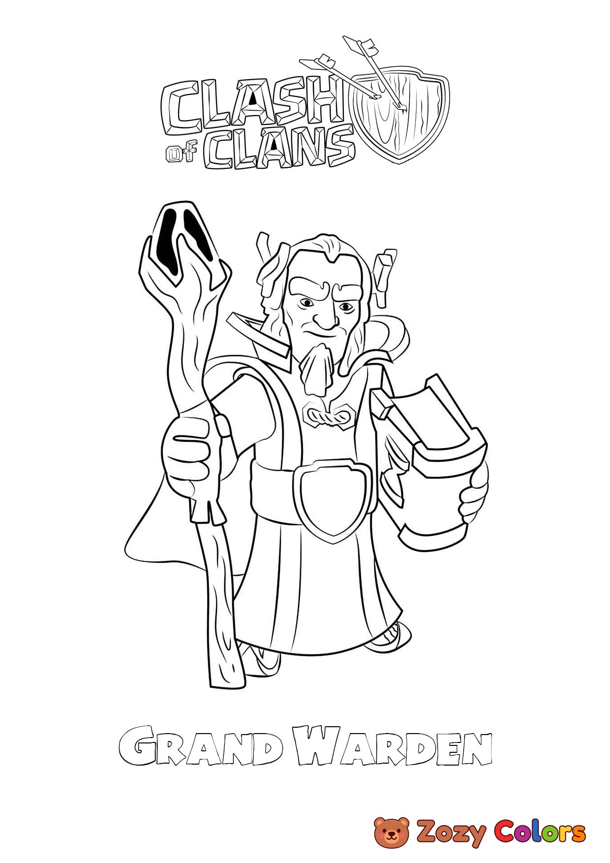 Grand Warden from Clash of Clans. Coloring page to print or download and color for your kids.