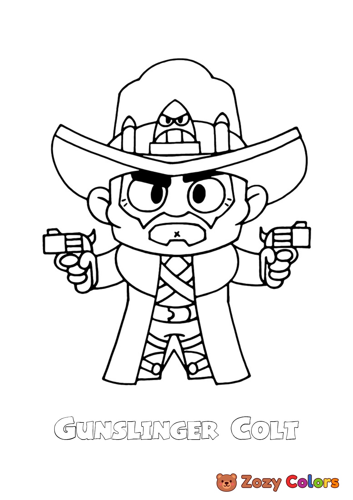 Gunslinger Colt Brawls Stars. Coloring page to print or download and color for your kids.