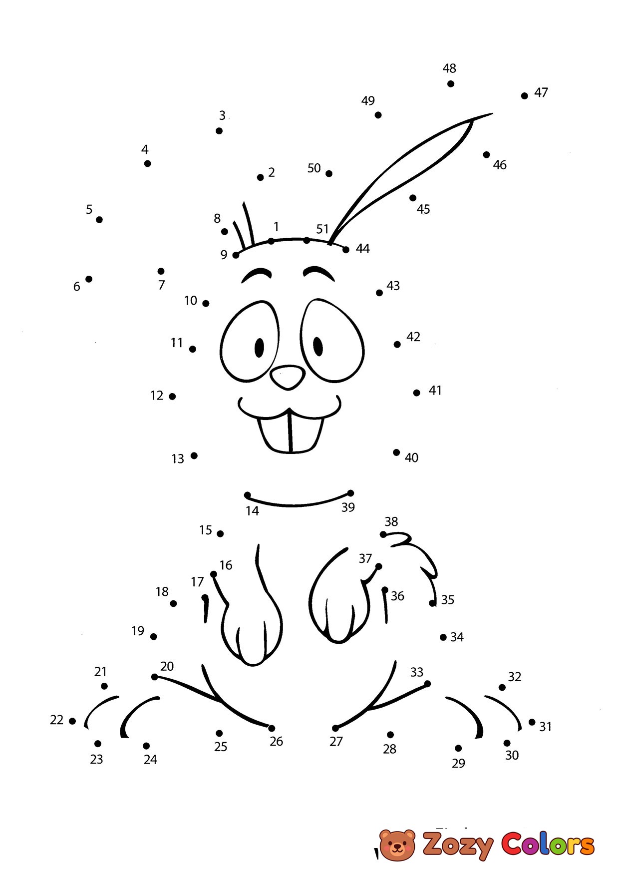 Happy Bunny - Free Dot the dots worksheets. Print, connect and color for kids.