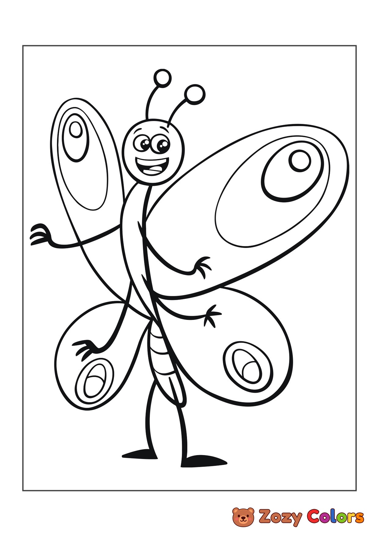 Happy butterfly. Coloring page to print or download and color for your kids.