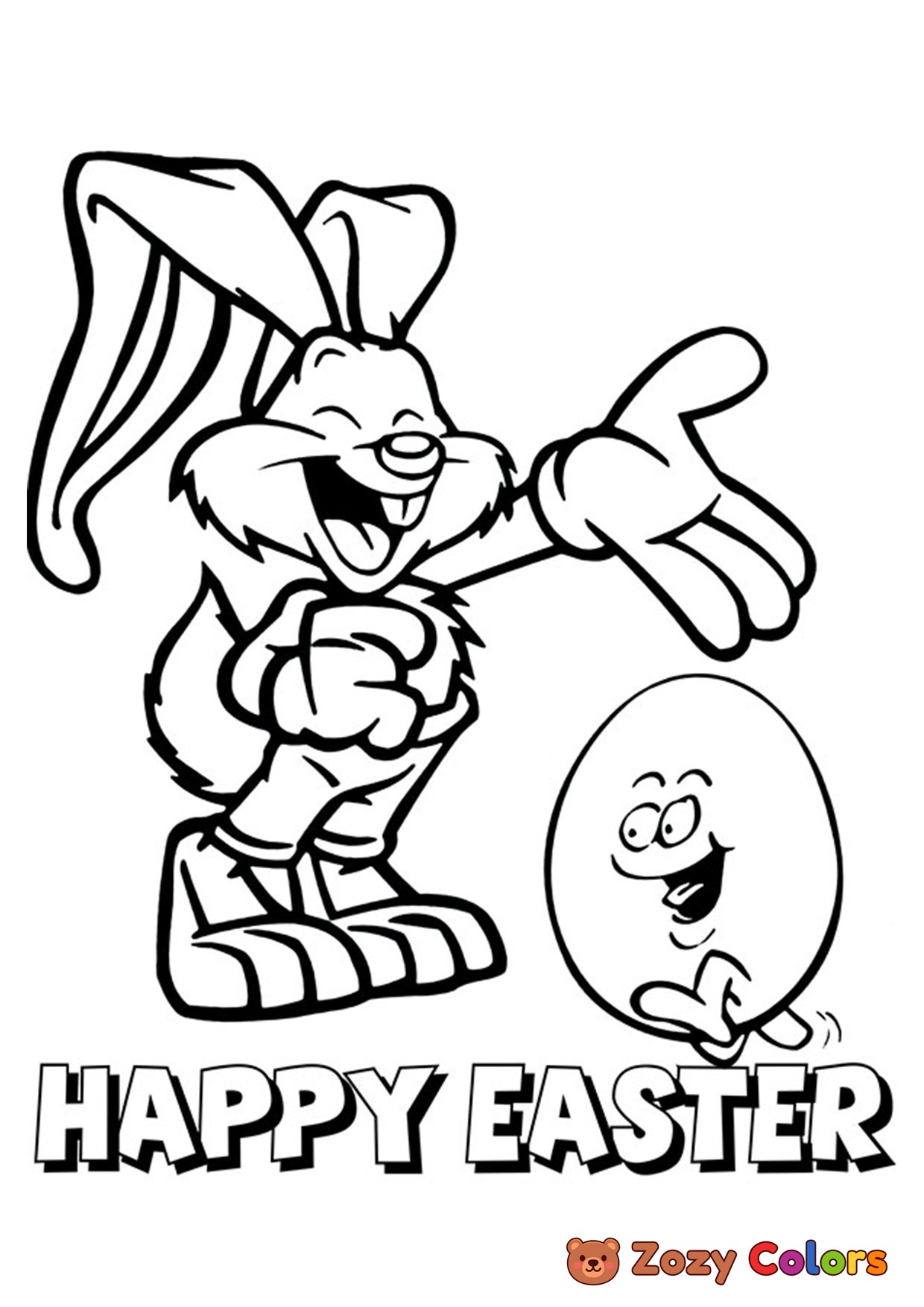 Happy Easter bunny and egg. Coloring page to print or download and color for your kids.