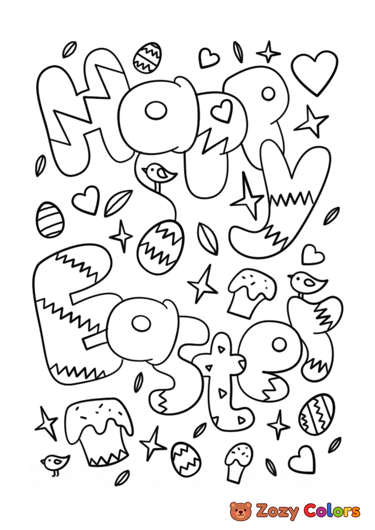 Happy Easter doodle. Coloring page to print or download and color for your kids.