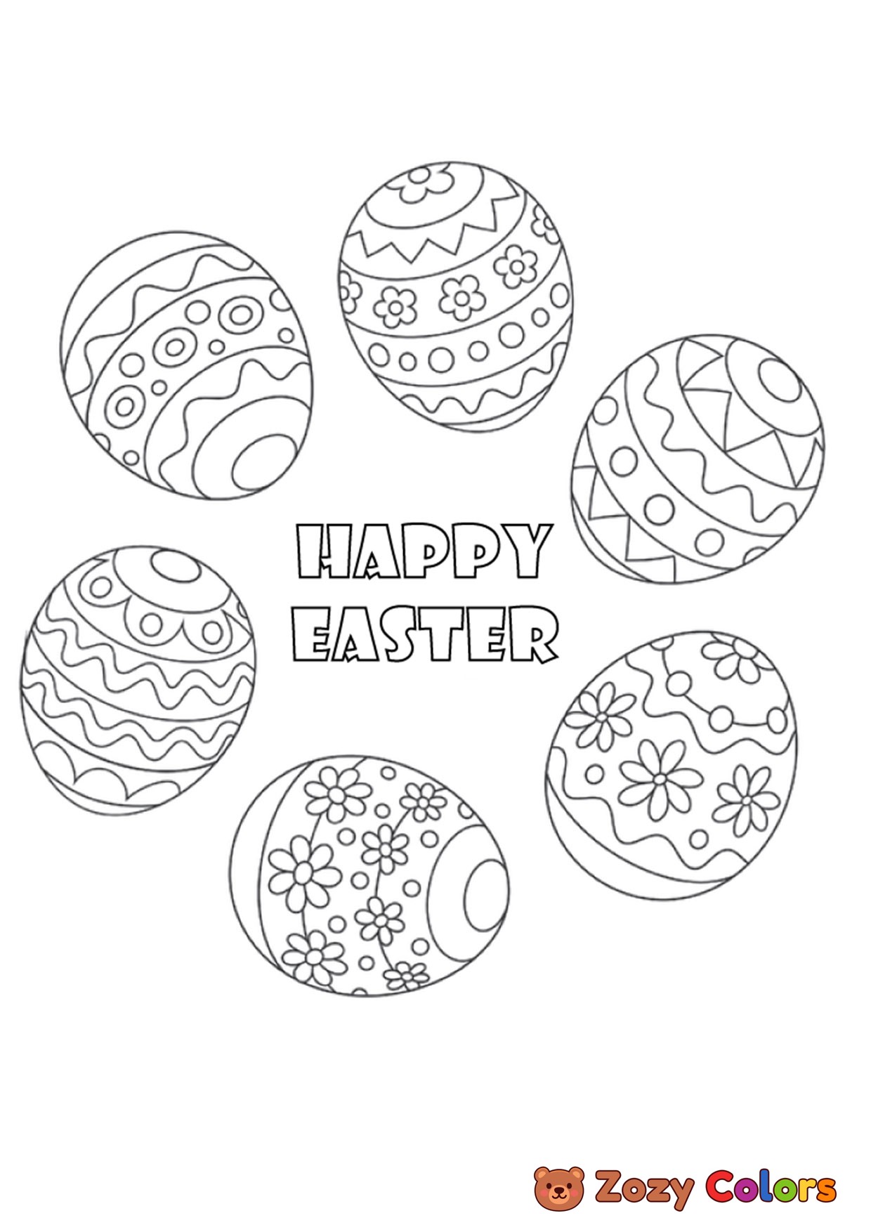 Happy Easter eggs. Coloring page to print or download and color for your kids.