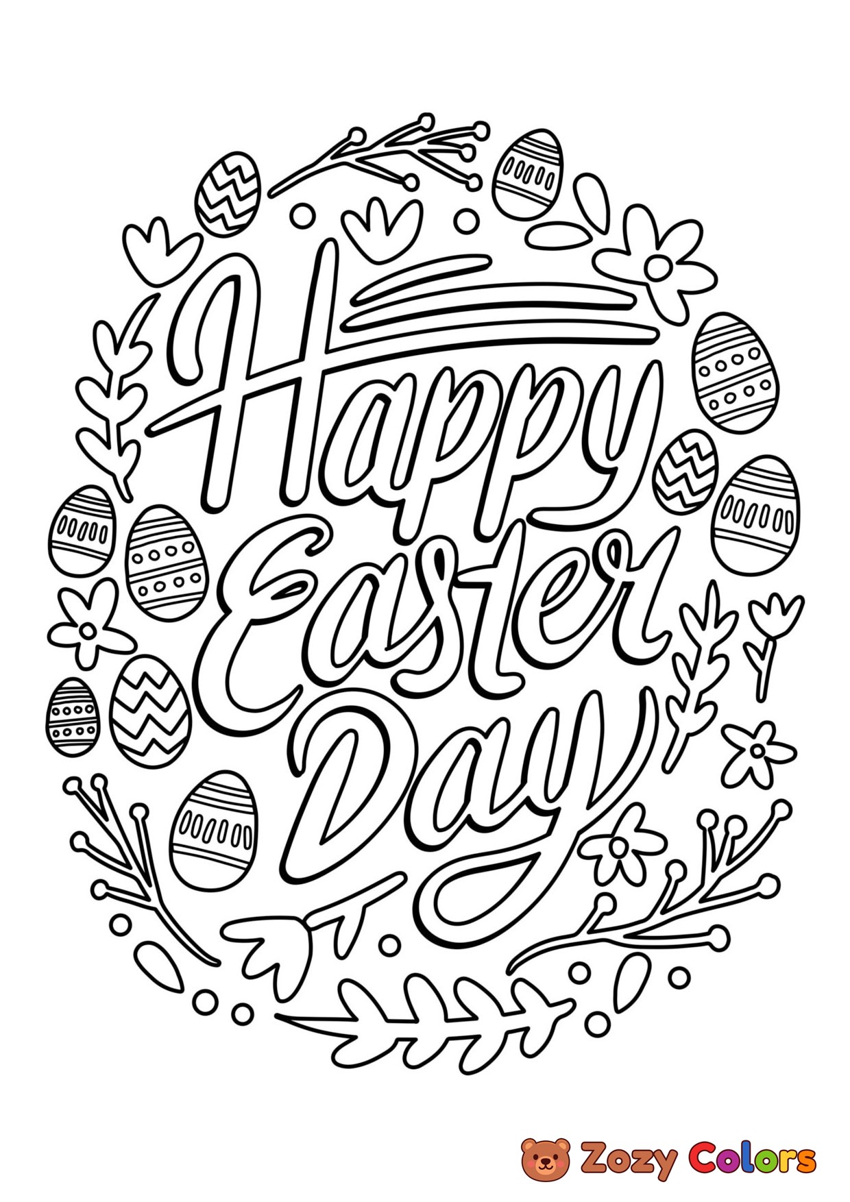 Happy Easter themed doodle. Coloring page to print or download and color for your kids.