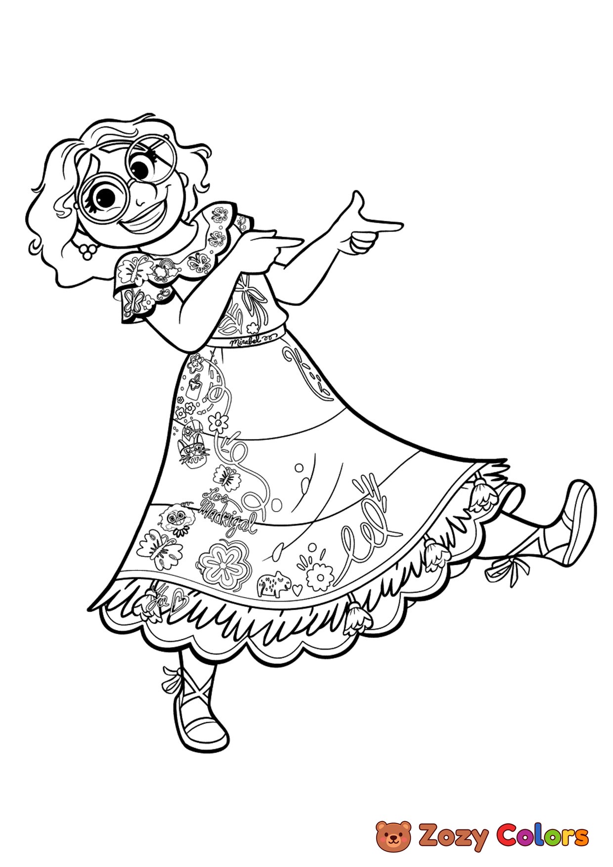 Happy Mirabel from Encanto. Coloring page to print or download and color for your kids.
