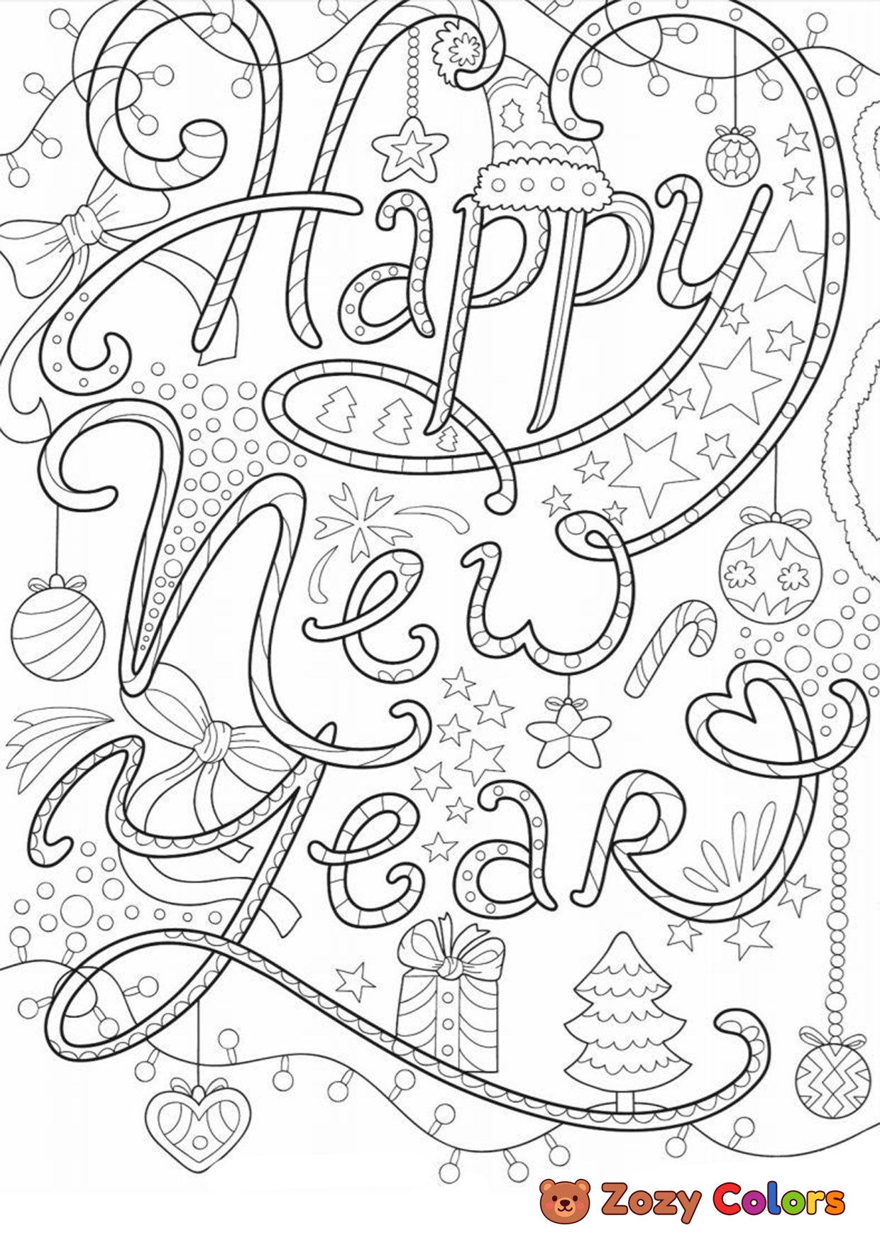 Happy New Year. Coloring page to print or download and color for your kids.