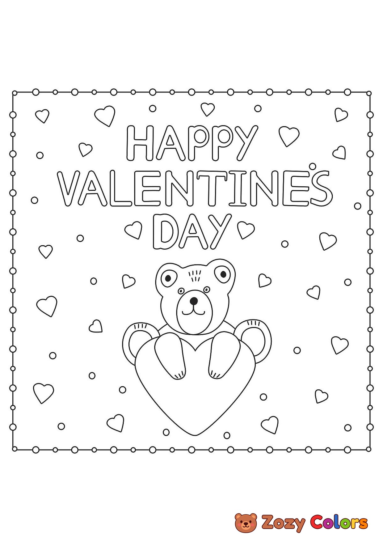 Happy Valentines bear. Coloring page to print or download and color for your kids.
