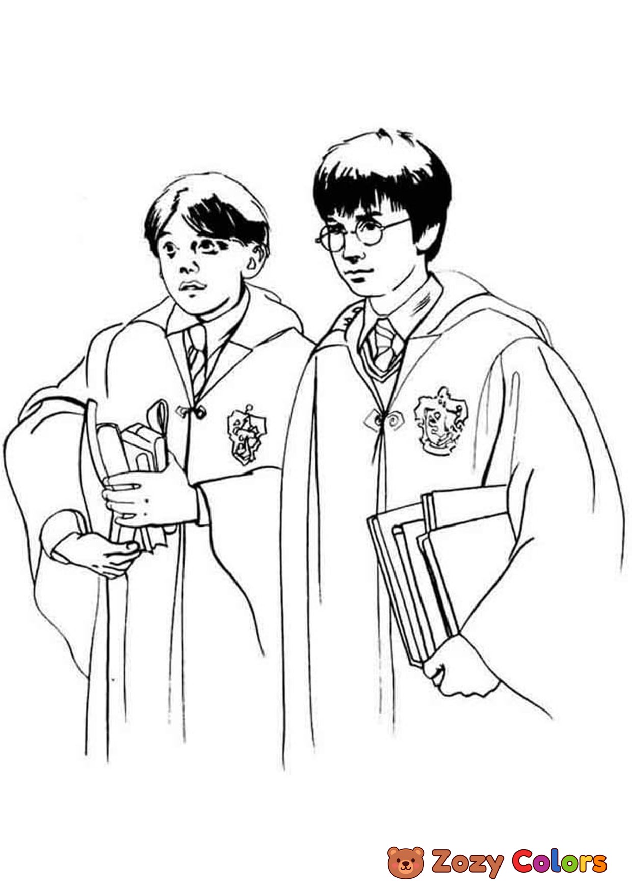 Harry and Ron in school. Coloring page to print or download and color for your kids.