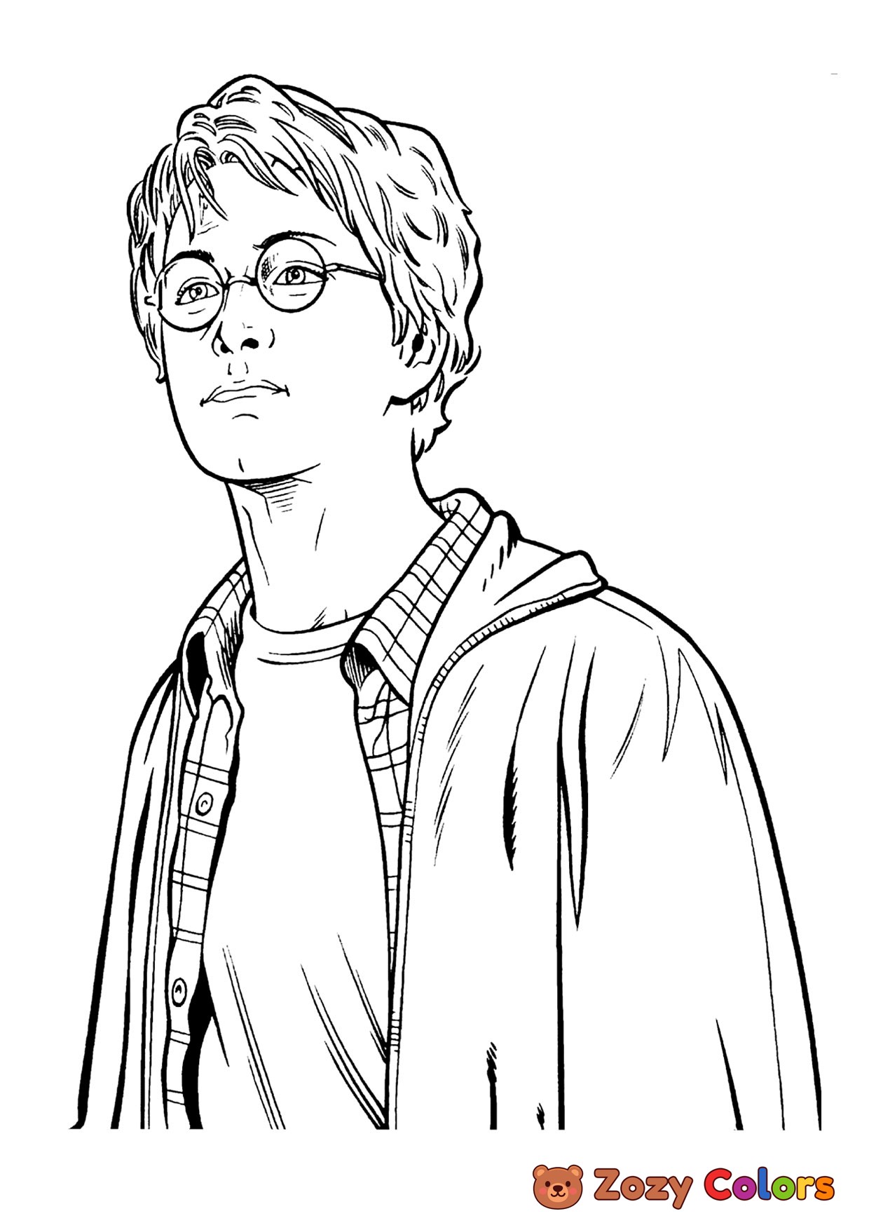 Harry Potter looking cool. Coloring page to print or download and color for your kids.