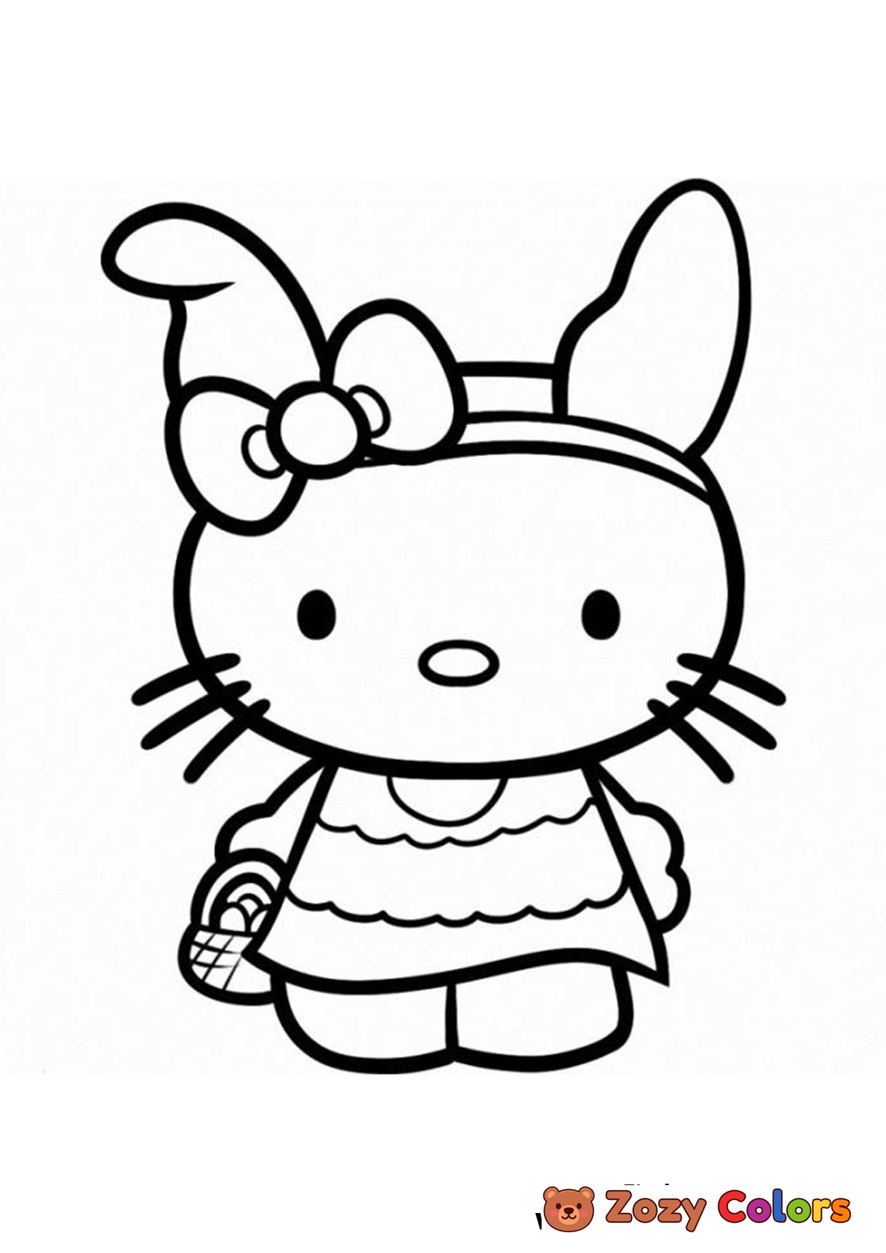 Hello Kitty in a cute bunny costim. Coloring page to print or download and color.