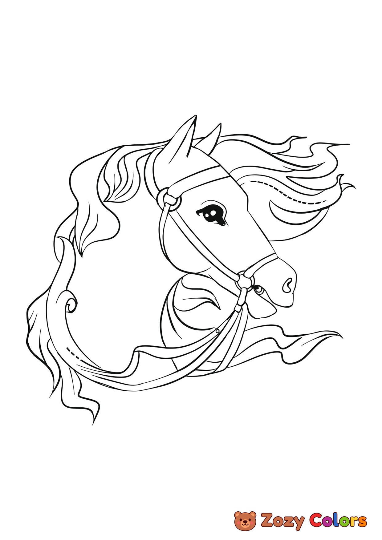 Horse portrait. Coloring page to print or download and color for your kids.